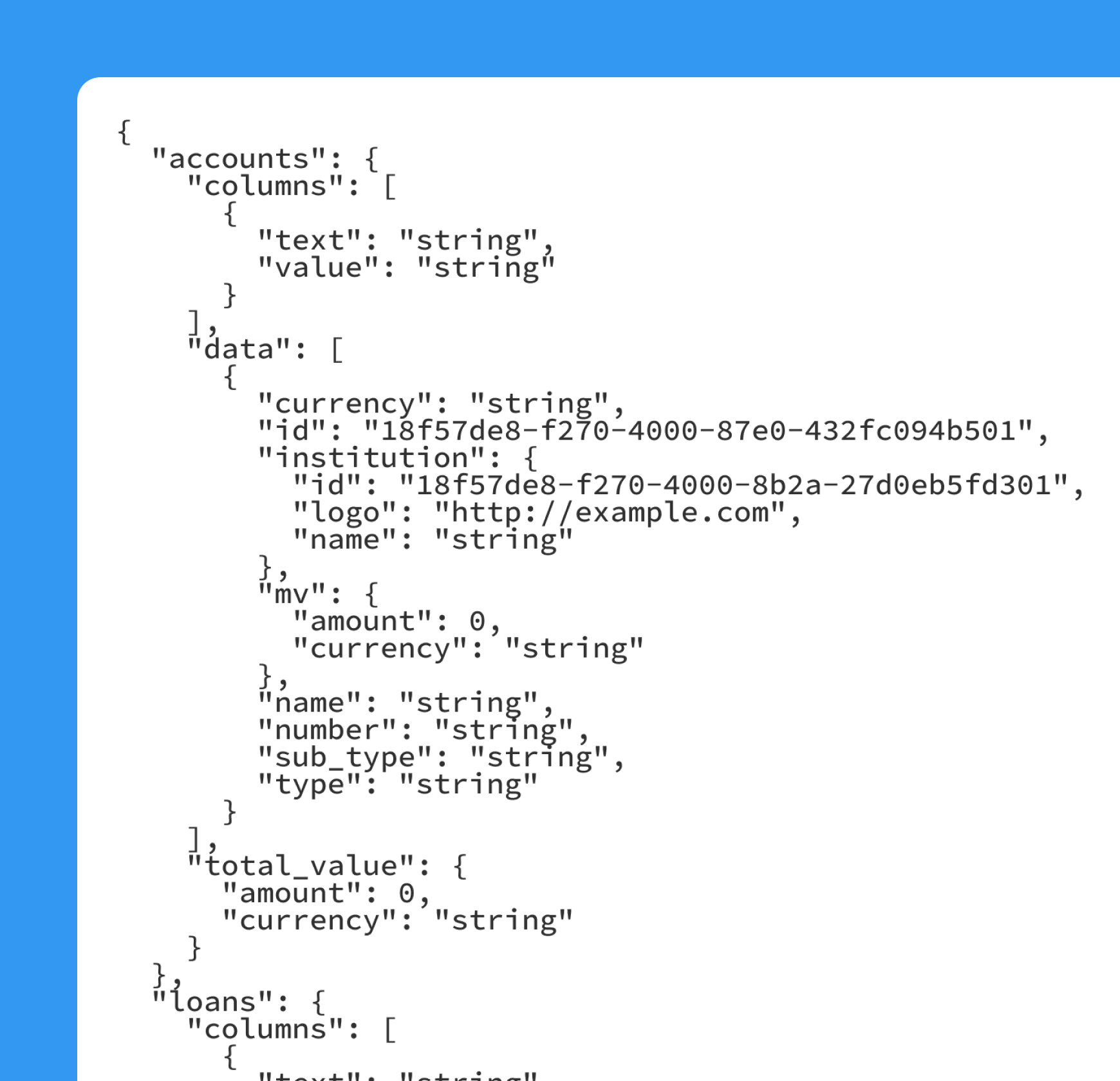 We mix and match between several account aggregators to get best coverage and data quality for your needs.